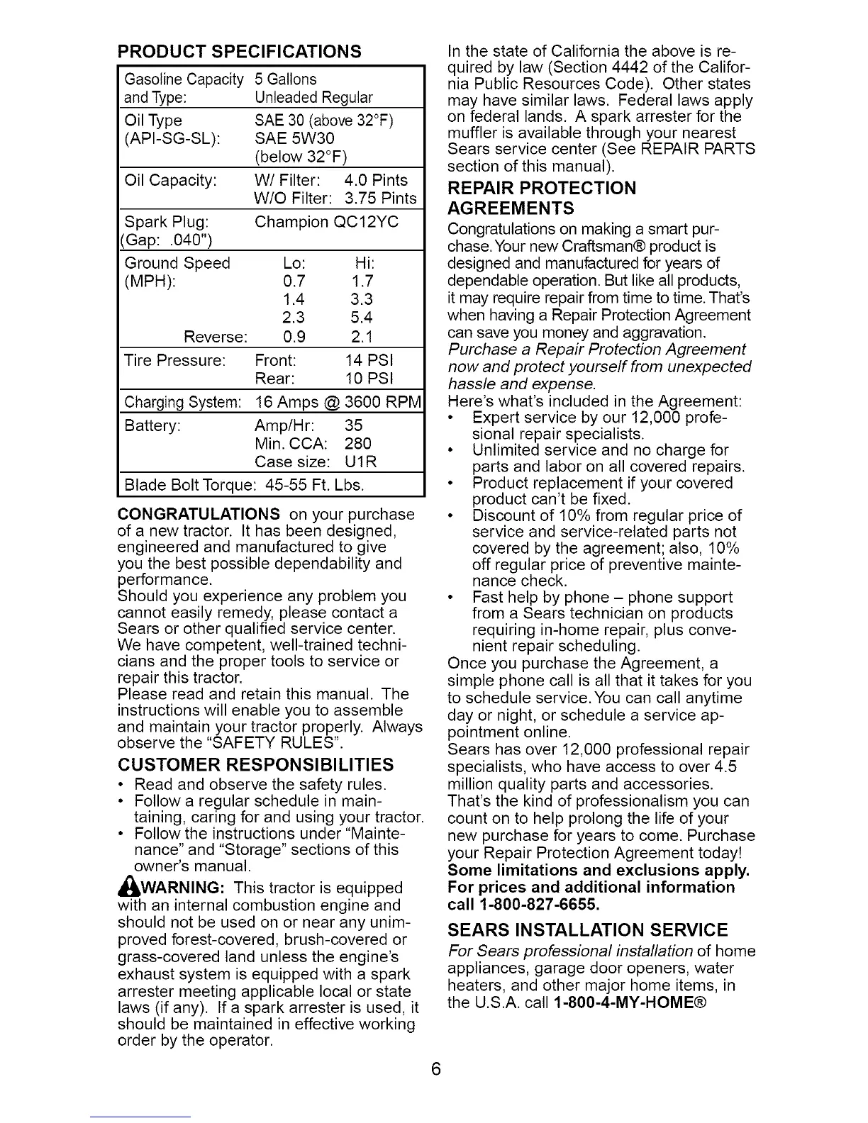 taining, caring for and using your tractor.