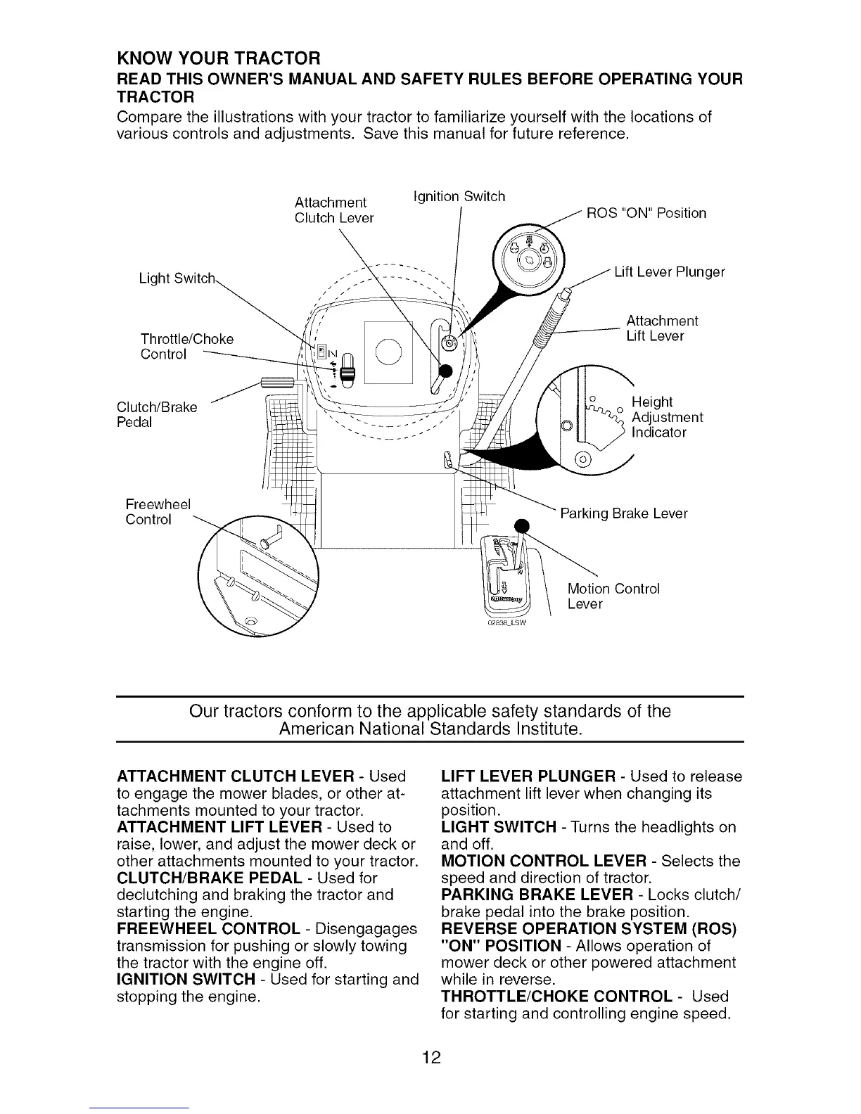 Compare the illustrations with your tractor to familiarize yourself with the locations of