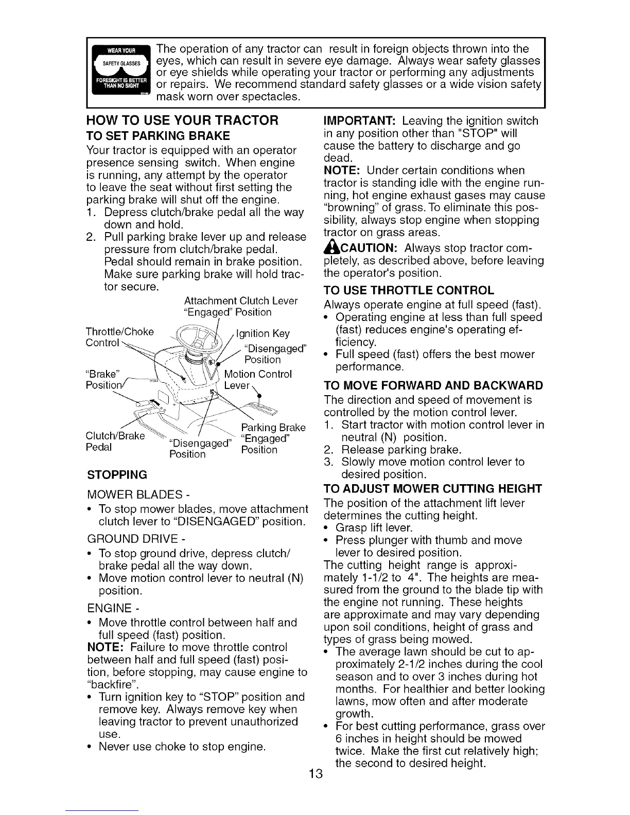 or eye shields while operating your tractor or performing any adjustments