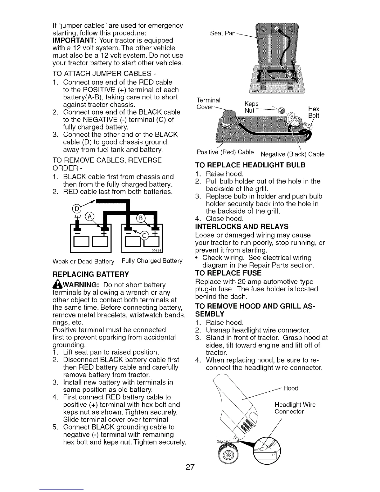 your tractor battery to start other vehicles.