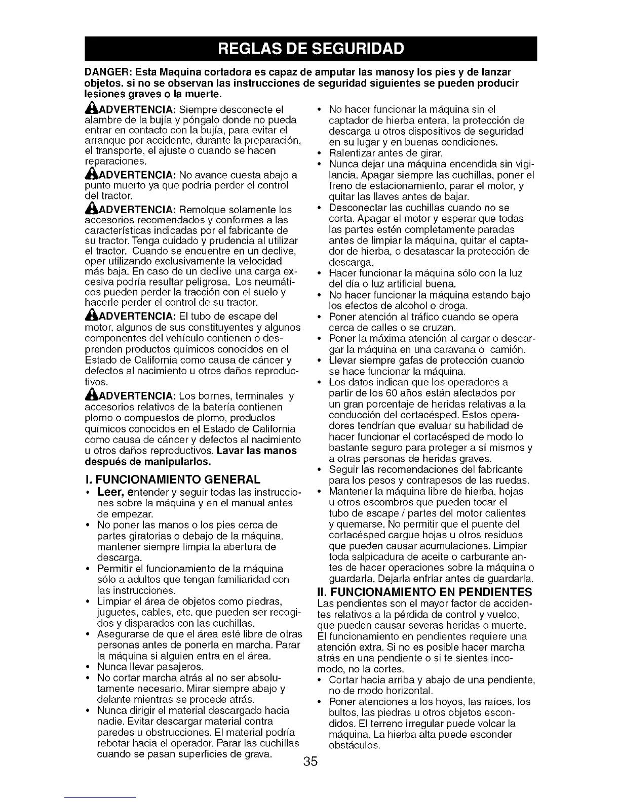 conducci6n del cortacesped. Estos opera-