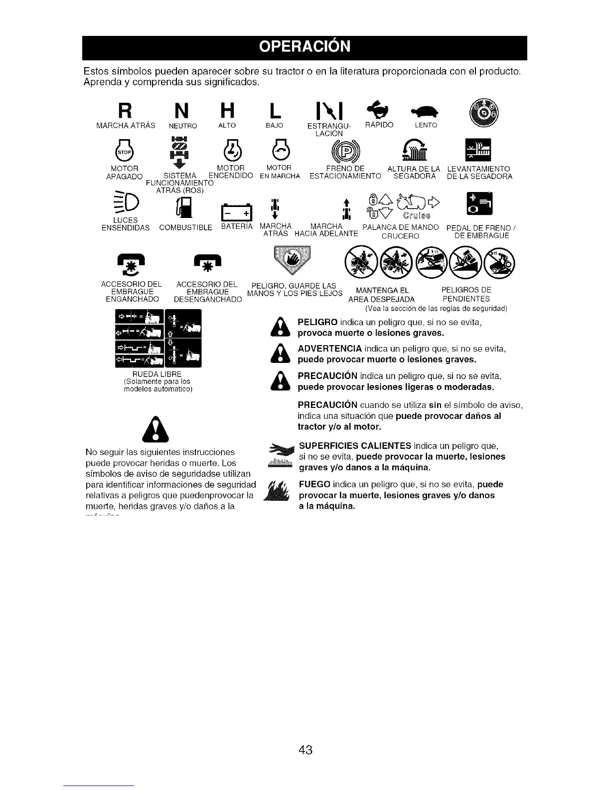 Estos simbolos pueden aparecer sobre su tractor o en la literatura proporcionada con el producto.