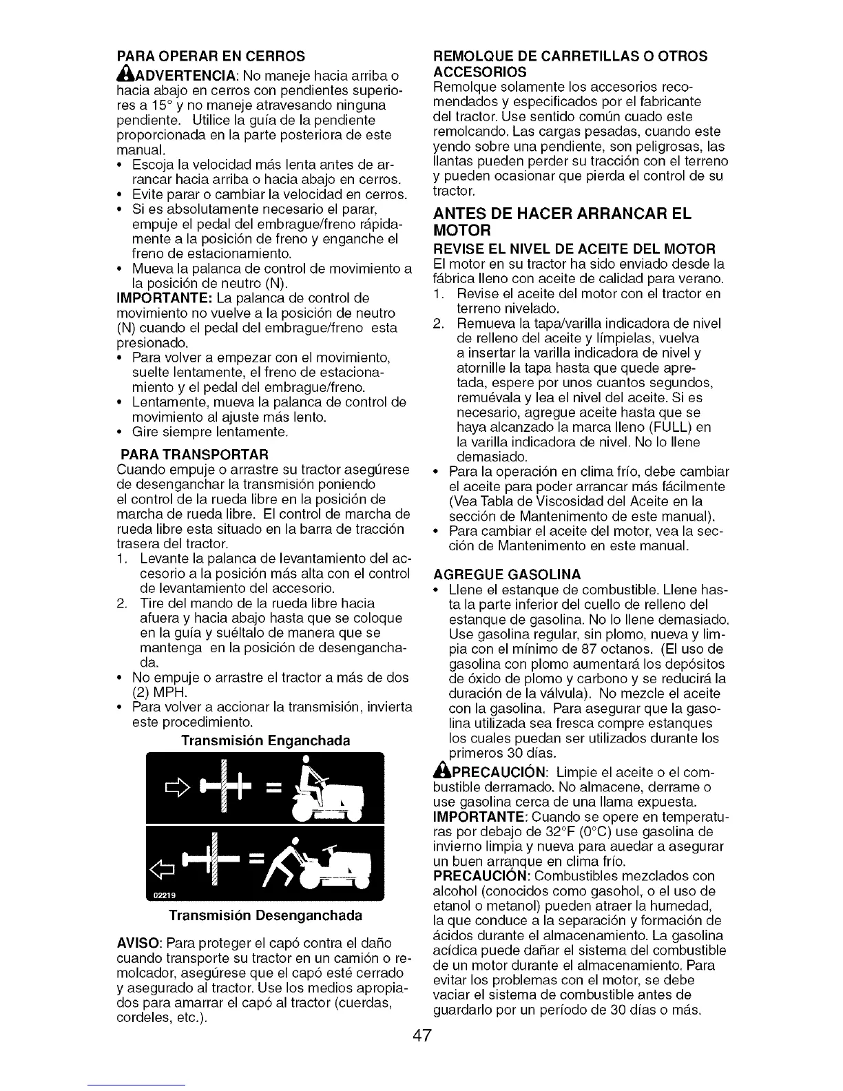 • No empuje o arrastre el tractor a m_.s de dos