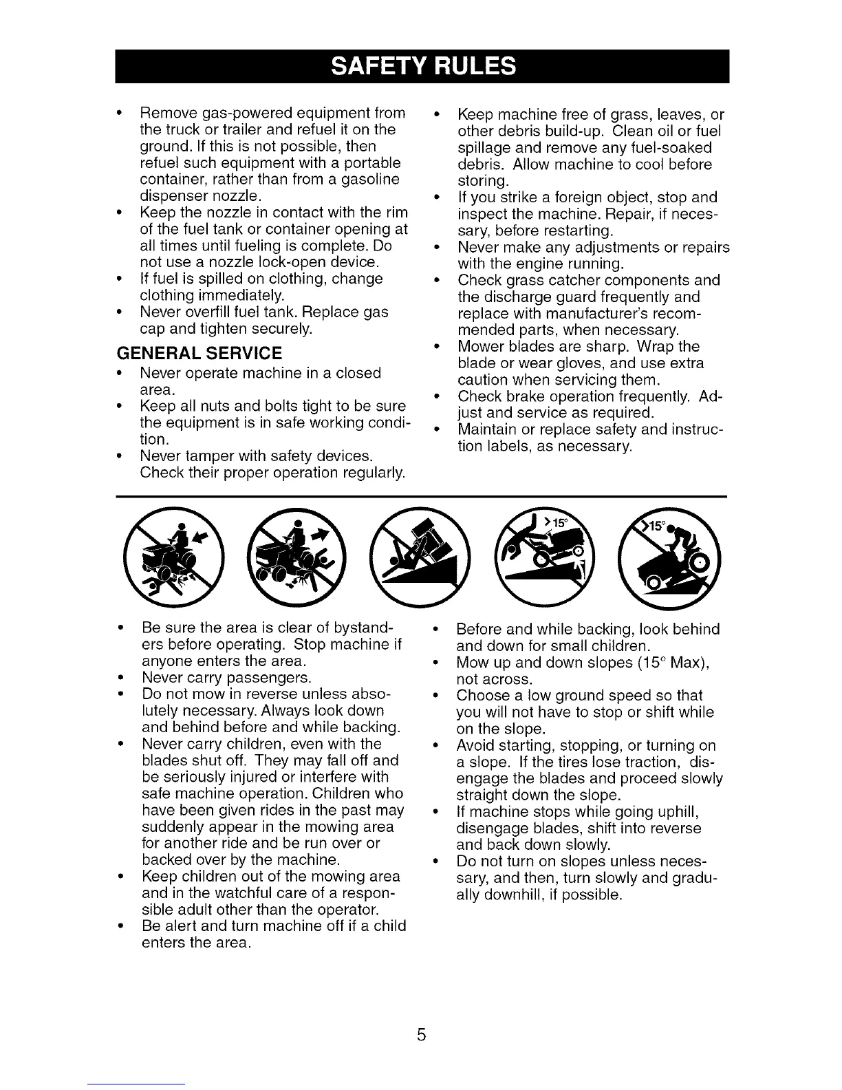 • Mow up and down slopes (15 ° Max),