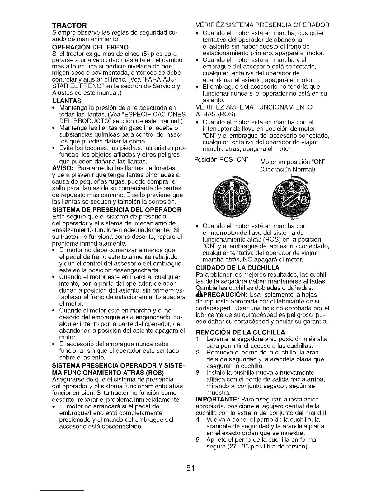 Posici6n ROS "ON" Motor en posici6n "ON"