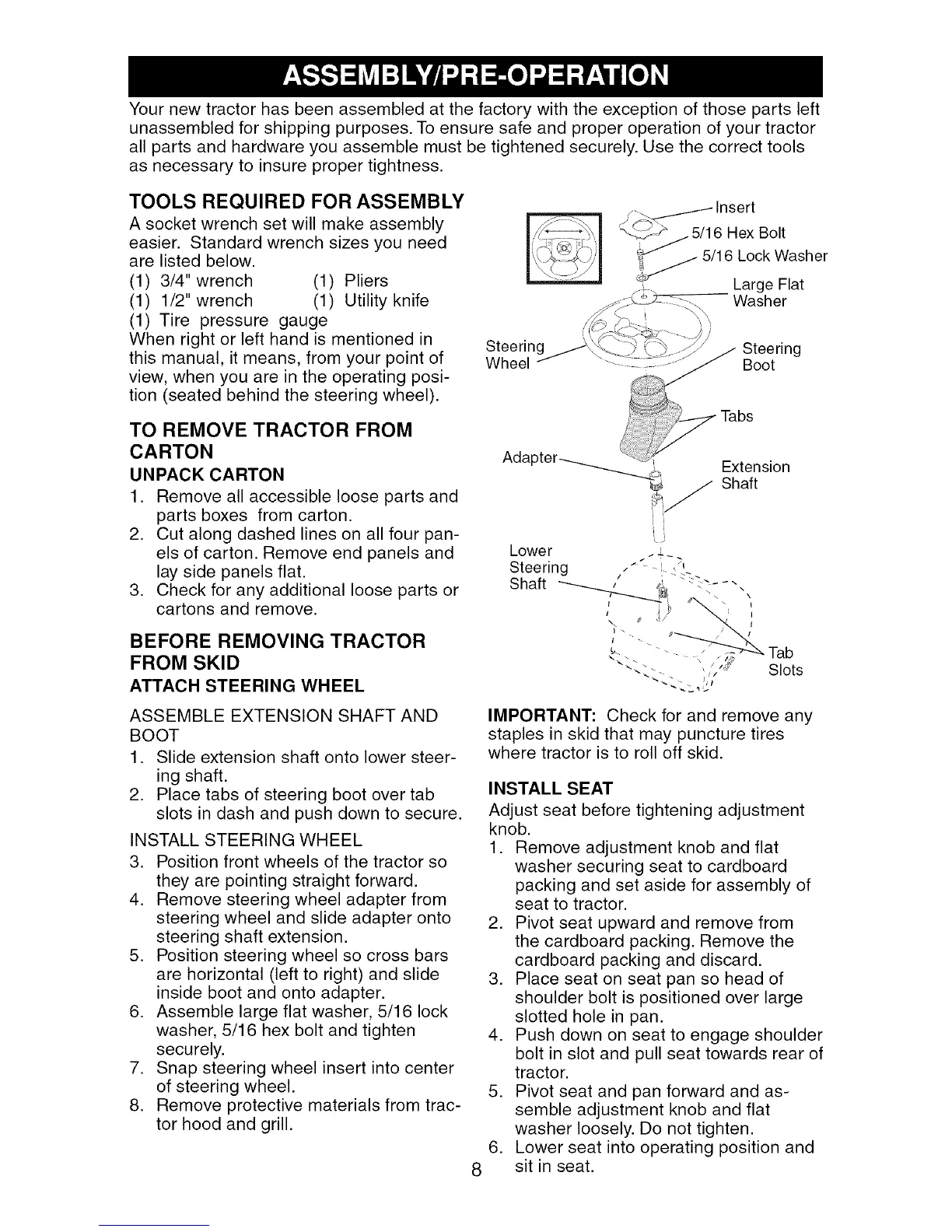 unassembled for shipping purposes. To ensure safe and proper operation of your tractor
