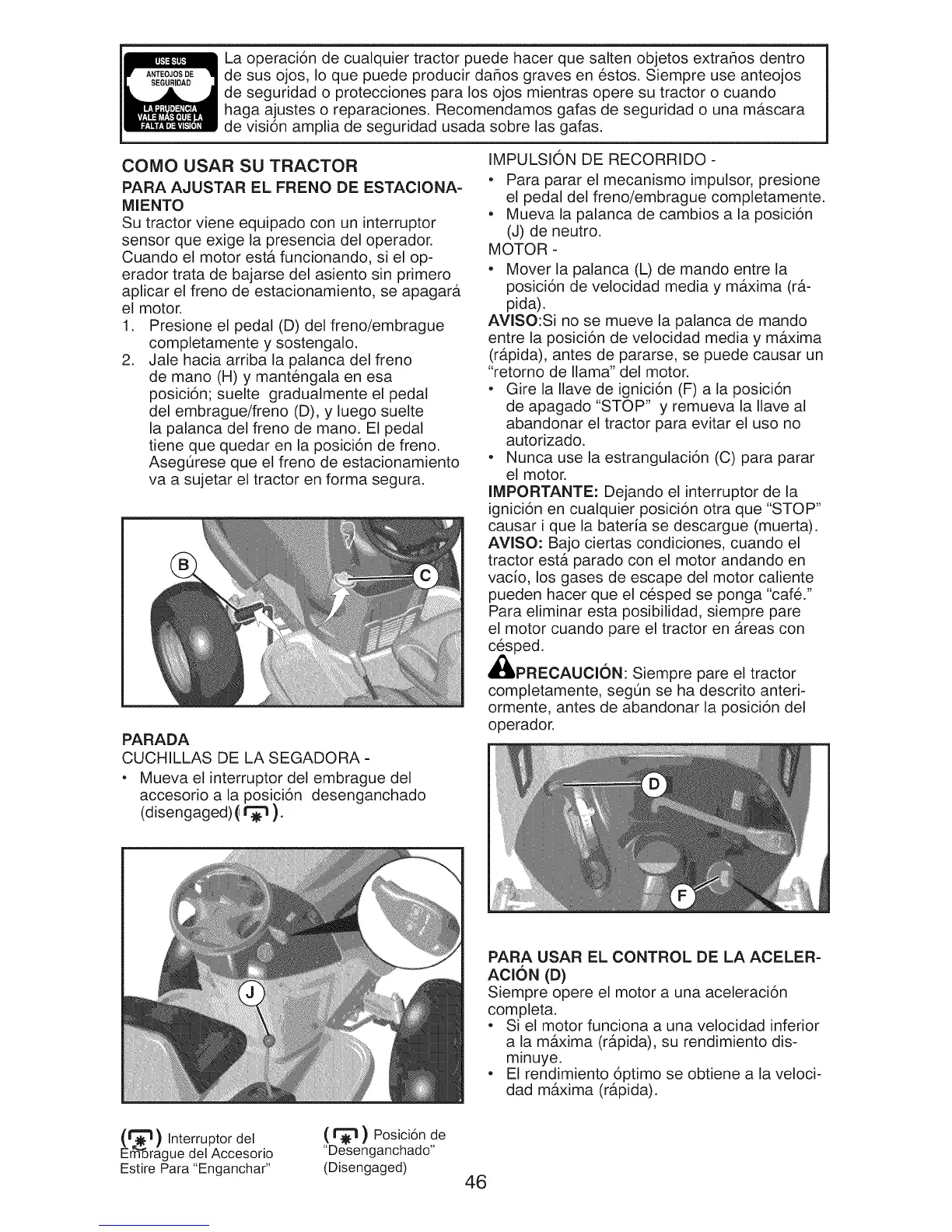 de seguridad o protecciones para los ojos mientras opere su tractor o cuando