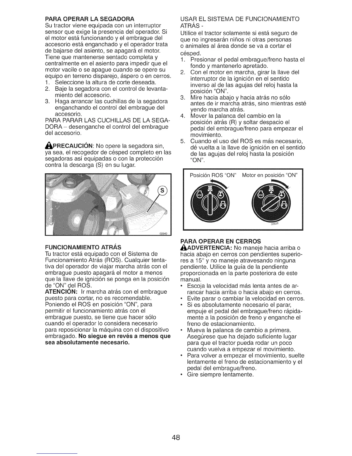 Posici6n ROS "ON" Motor en poslci6n "ON"