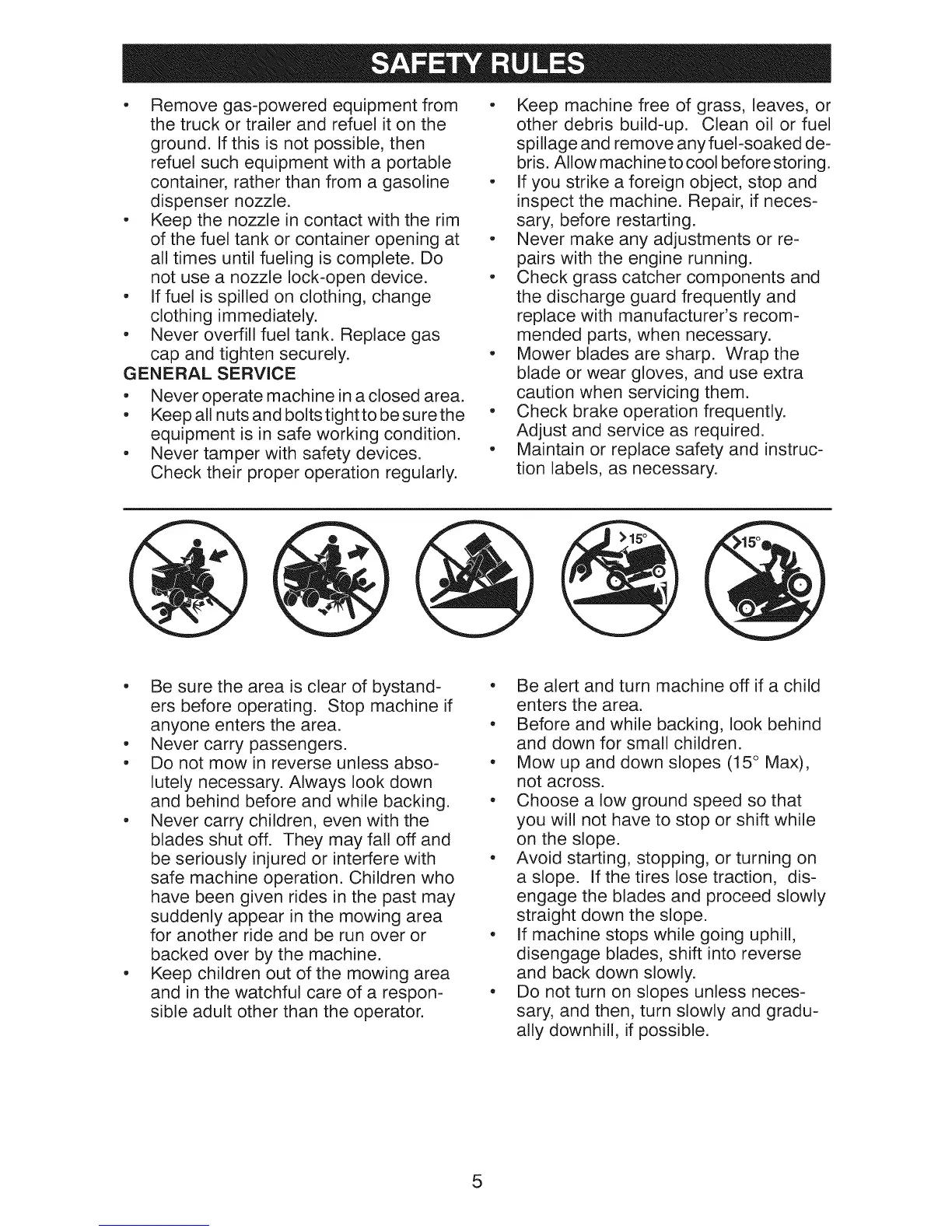 • Mow up and down slopes (15 ° Max),