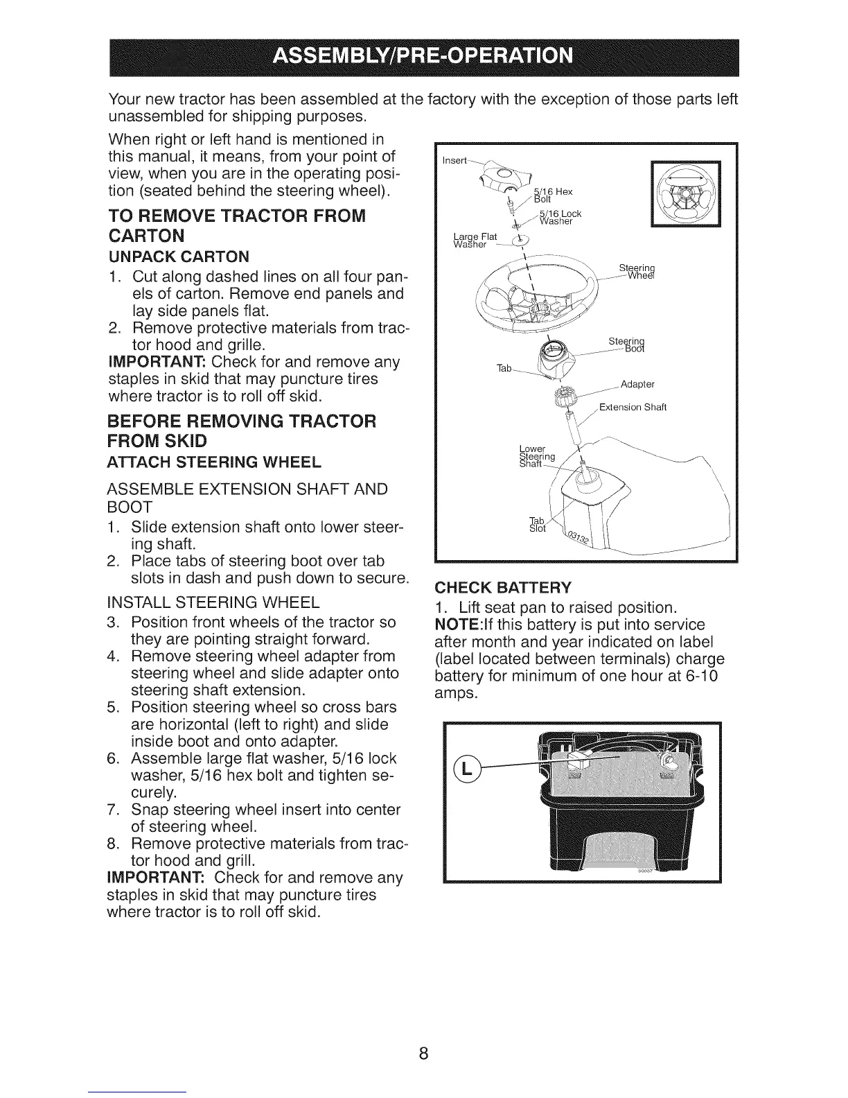 Yournewtractor has beenassembledat the factorywith the exceptionof those parts left