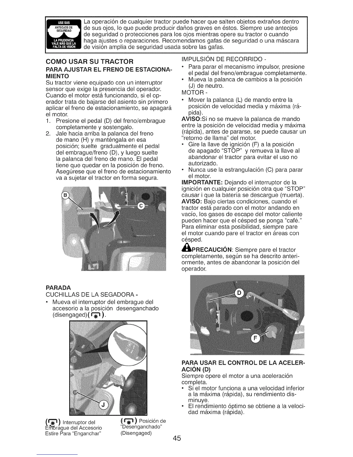 de seguridad o protecciones para los ojos mientras opere su tractor o cuando