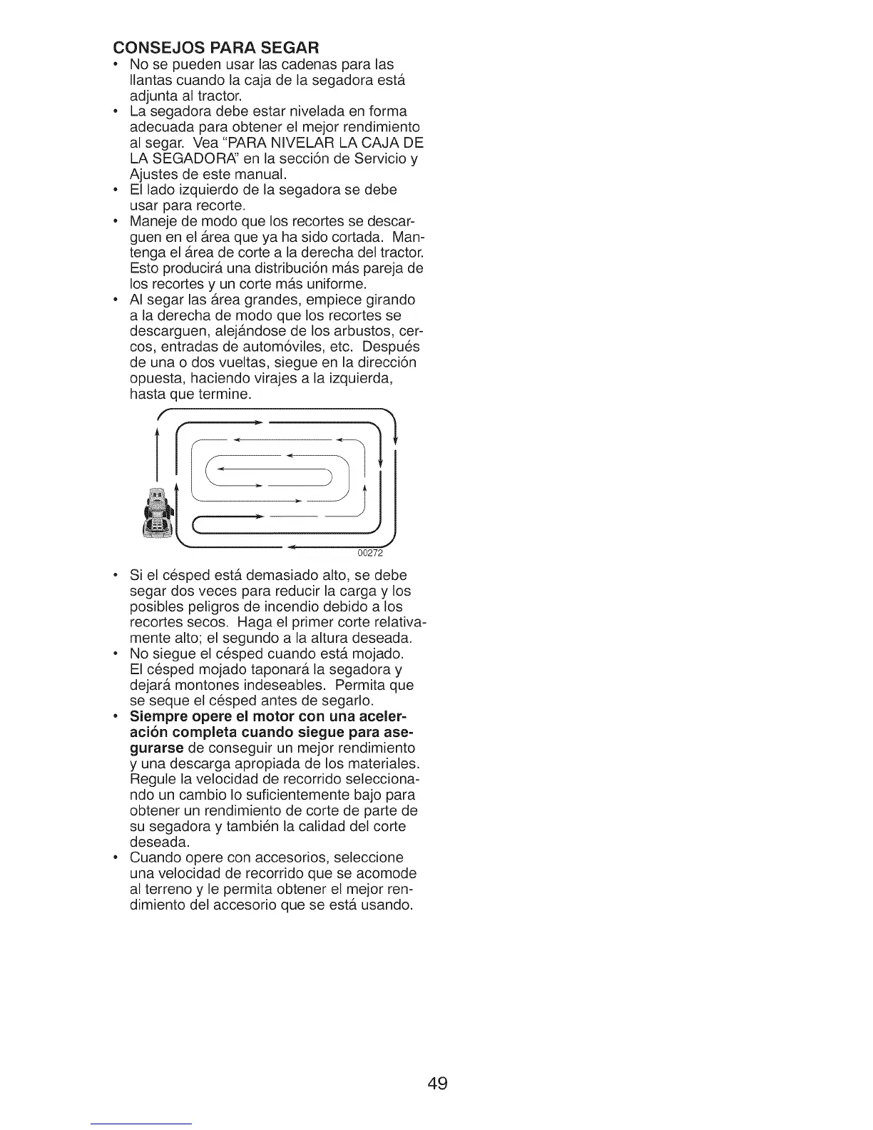 su segadora y tambi6n la calidad del corte