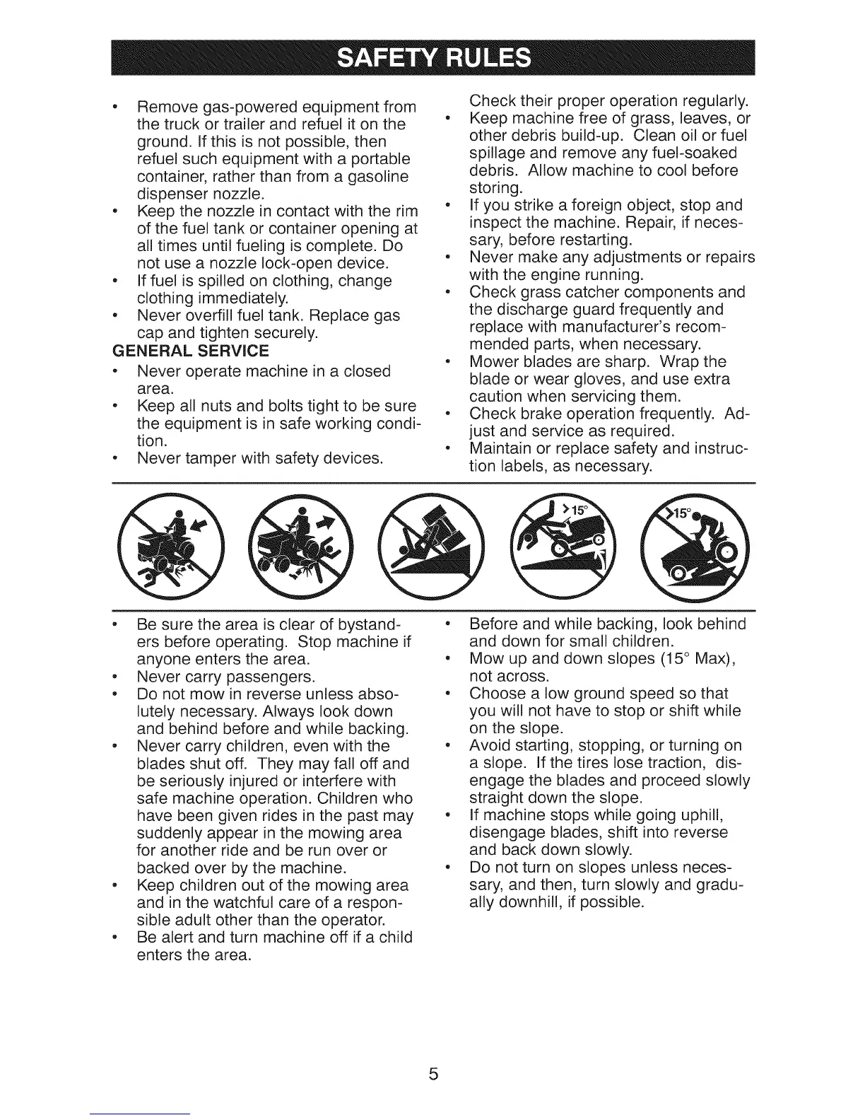• Mow up and down slopes (15 ° Max),