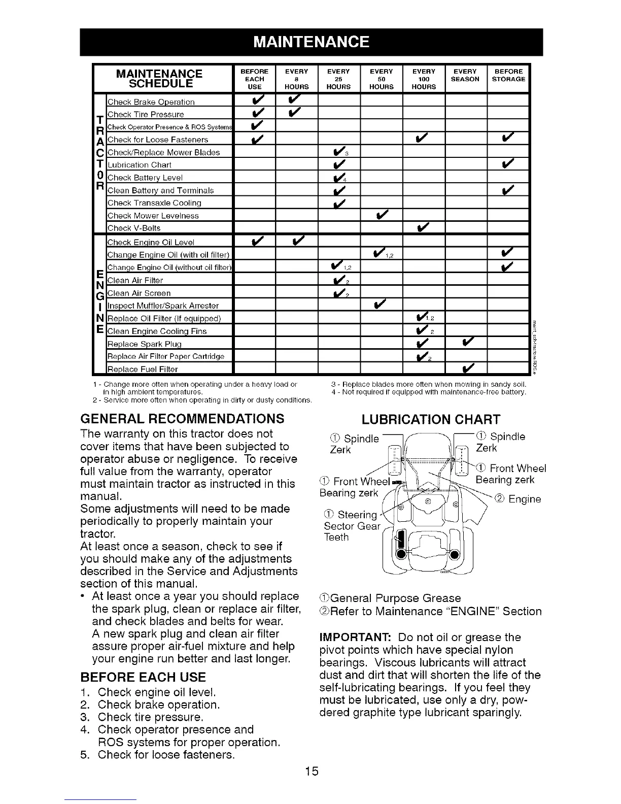 must maintain tractor as instructed in this