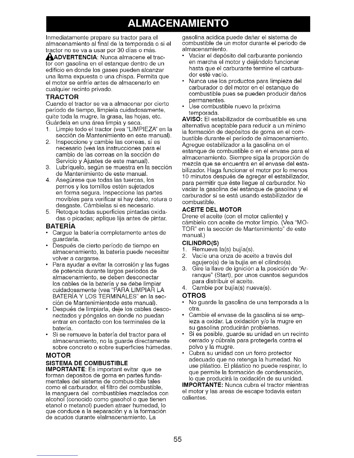 1. Limpie todo el tractor (vea "LIMPIEZ/_' en la