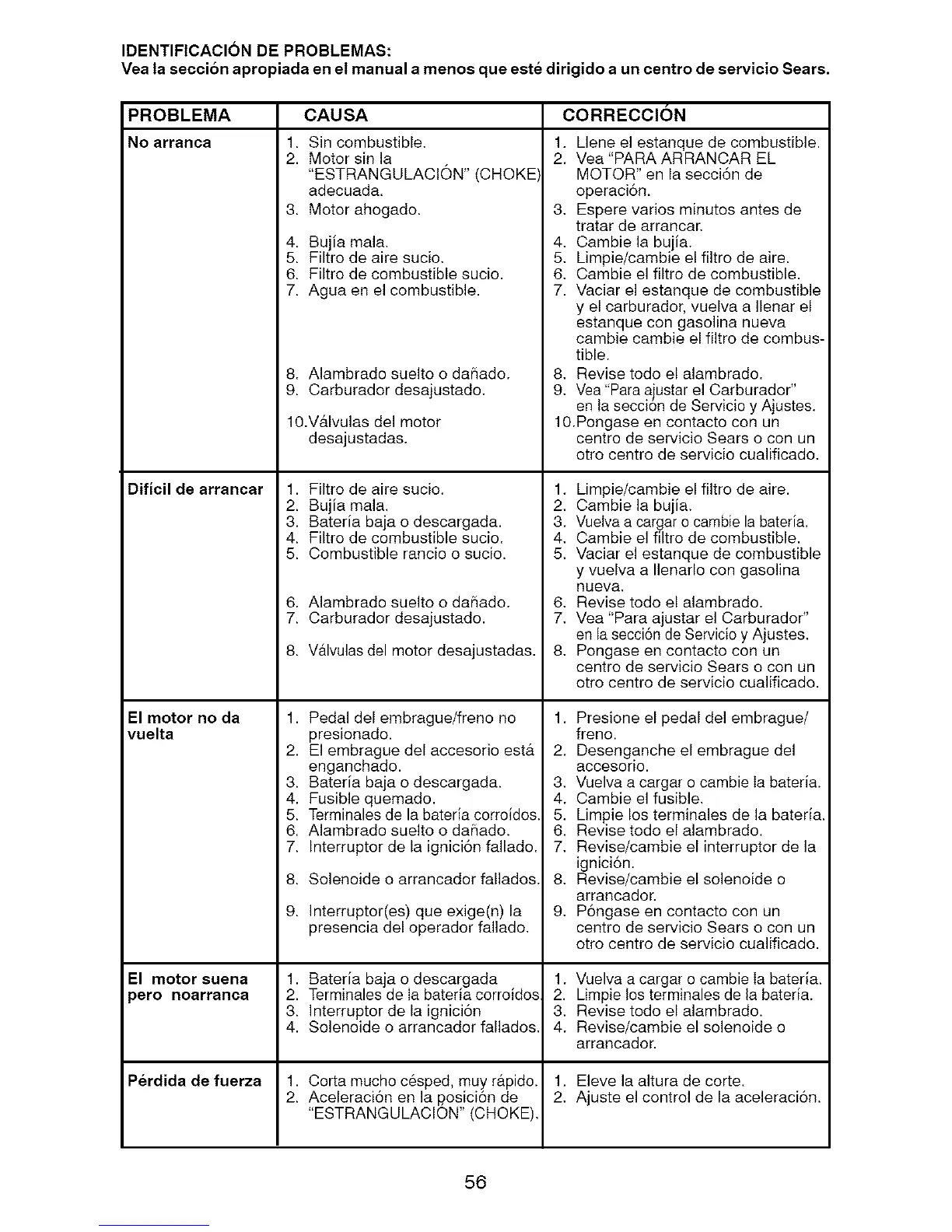 Yea ta seccion apropiada en el manual a menos que este dirigido a un centro de servicio Sears.