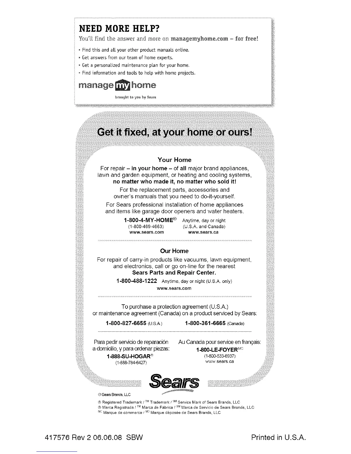 417576 Rev 2 06.06.08 SBW Printed in U.S.A.