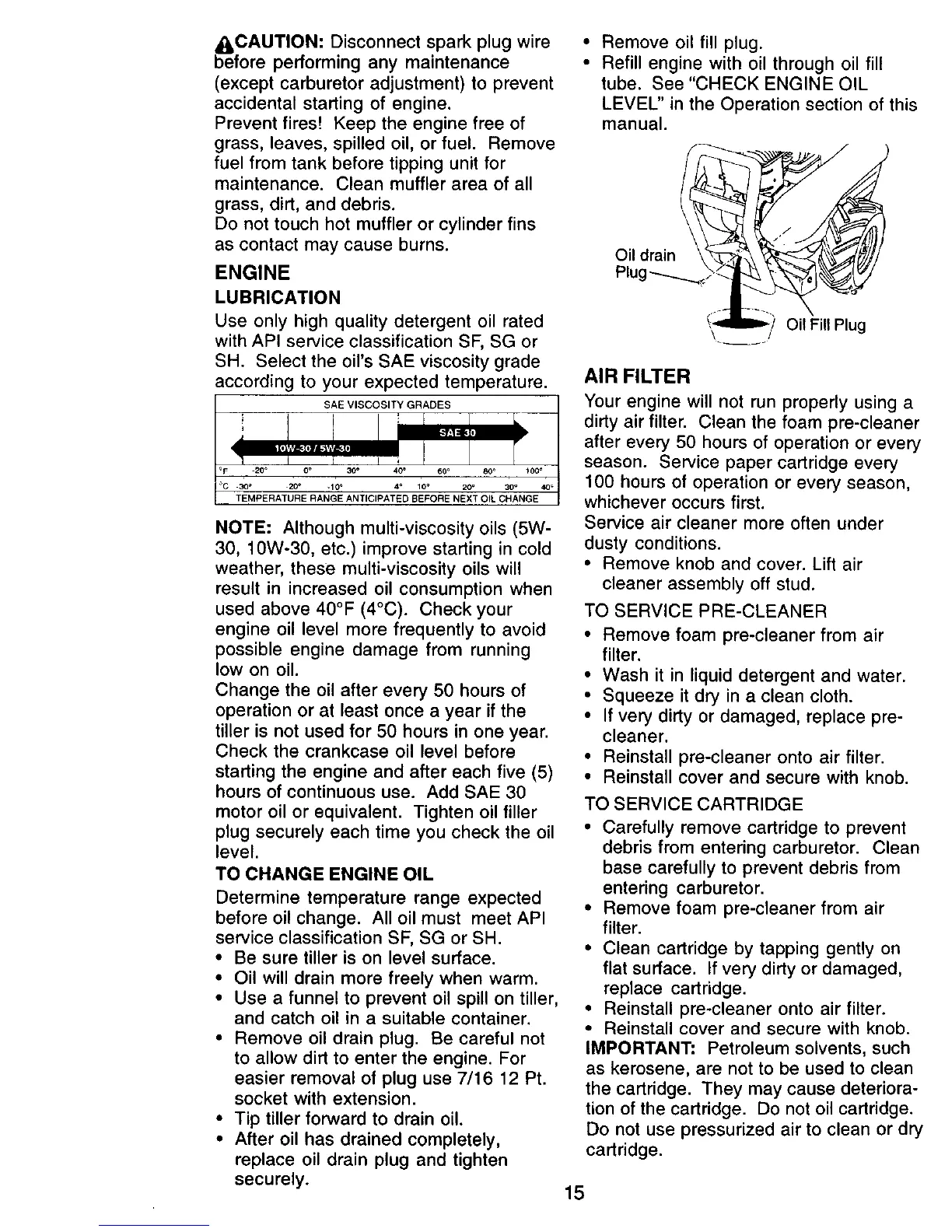 motor oil or equivalent. Tighten oil filler
