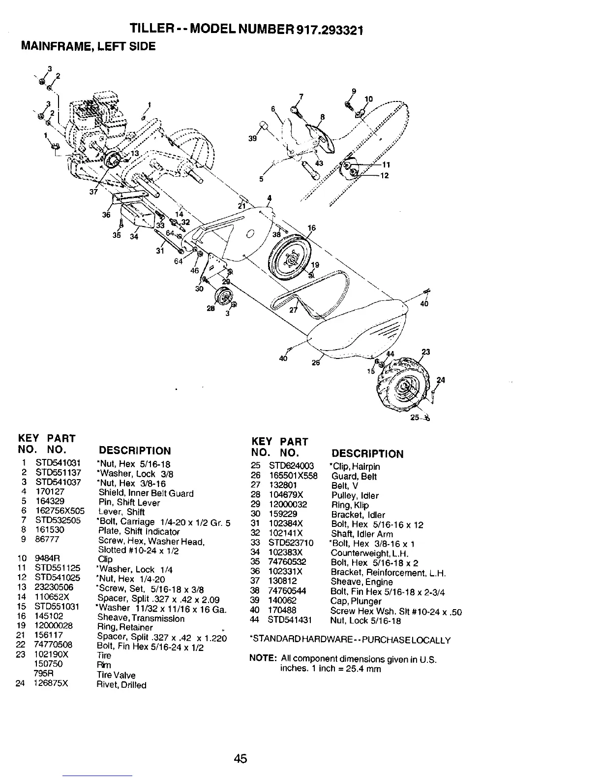 TILLER -- MODEL NUMBER 917.293321