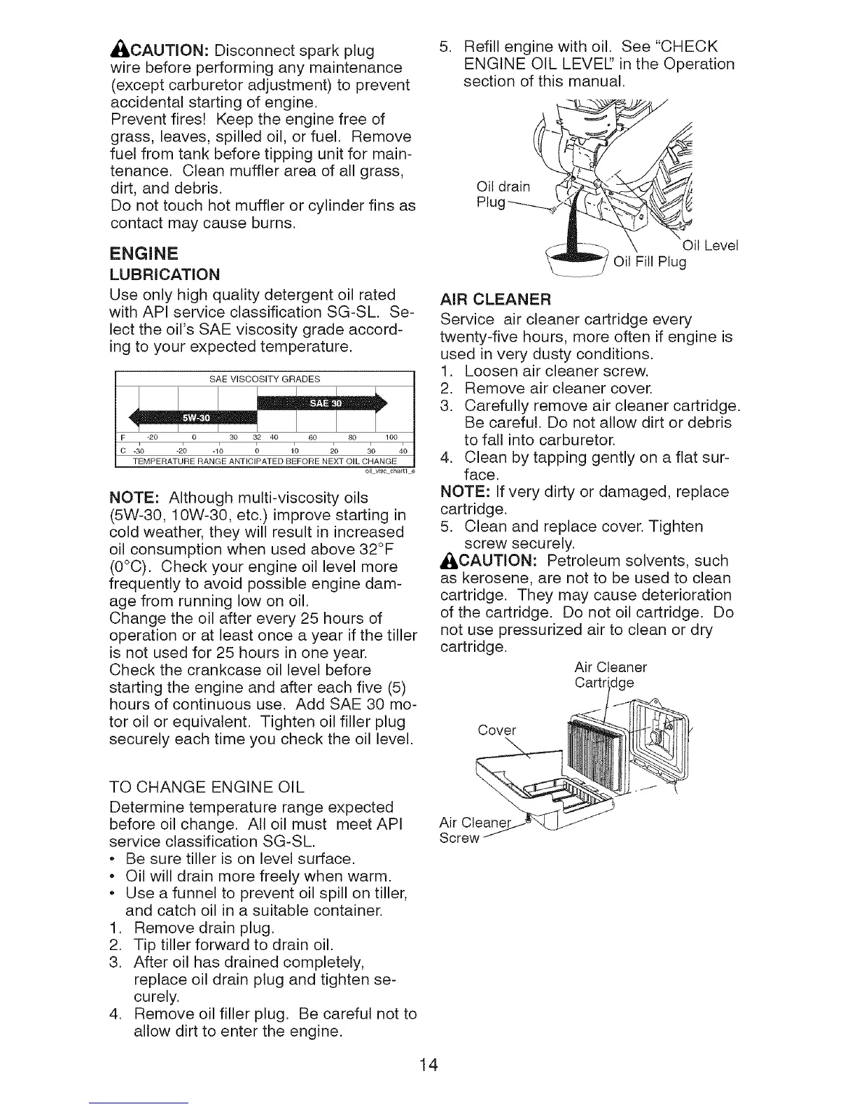 tor oil or equivalent. Tighten oil filler plug
