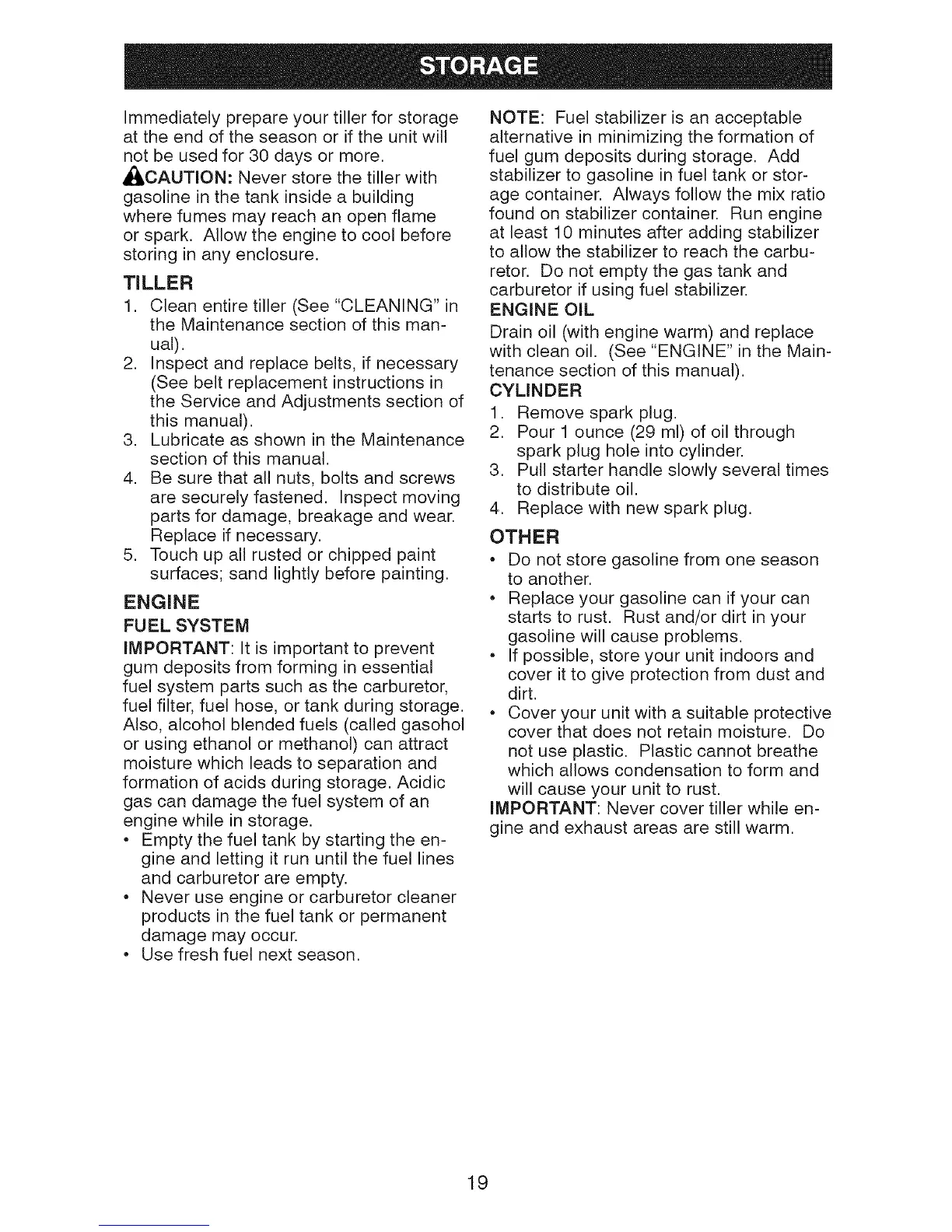 A_,CAUTION: Never store the tiller with