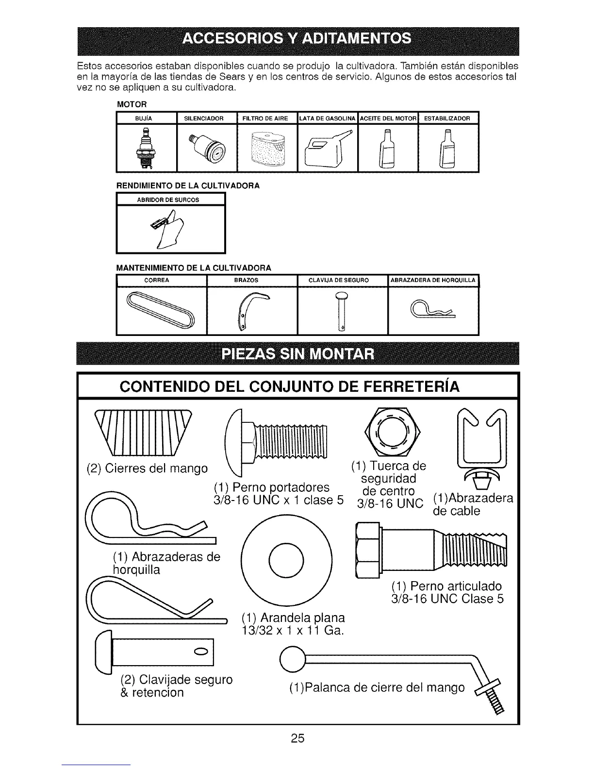 Estos accesorios estaban disponibles cuando se produjo la cultivadora. Tambien est&n disponibles