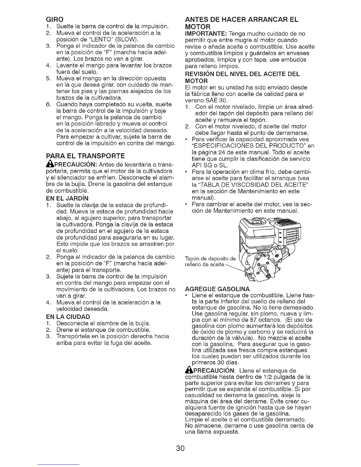 portarla, permita que el motor de la cultivadora