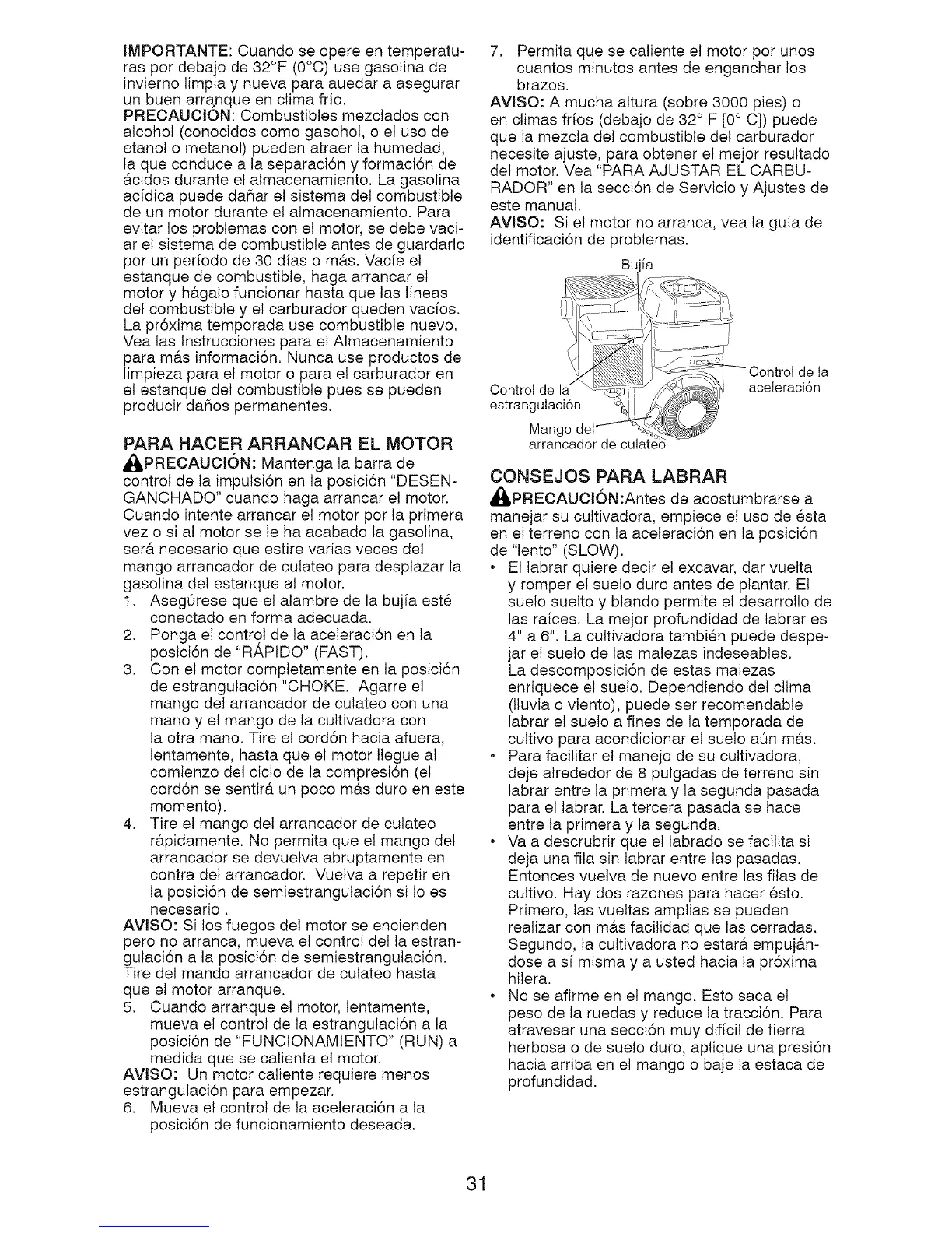 AVlSO: Si el motor no arranca, vea la guia de