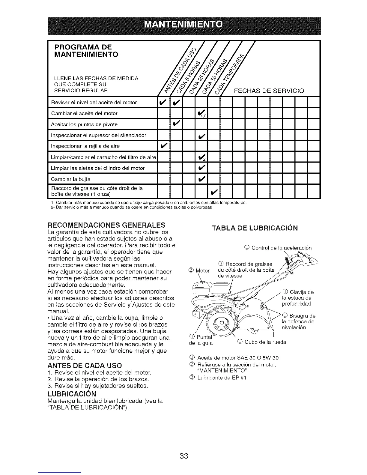 2- Dar servicio mAs a menudo cuando se opere en condioiones suoias o polvorosas