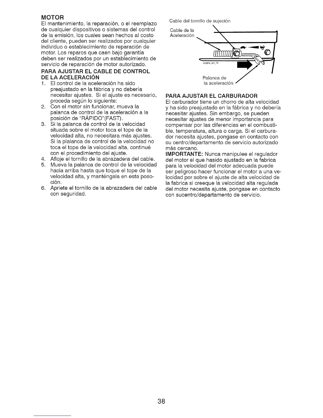 palanca de control de la aceleraci6n a la