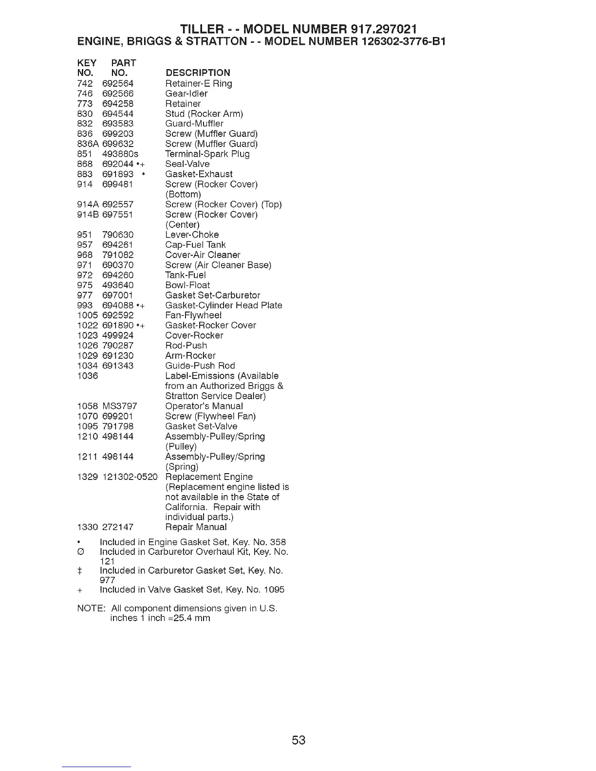 TILLER = = MODEL NUMBER 917.297021