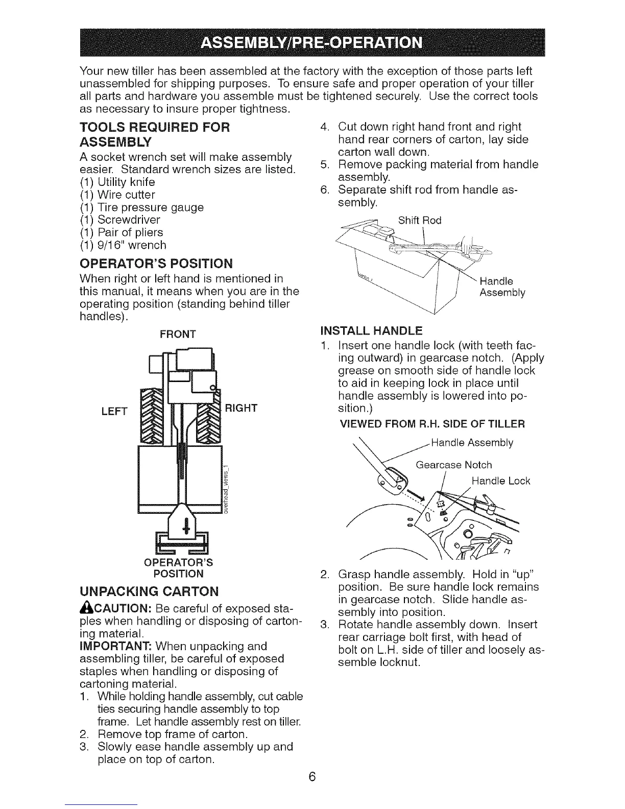Your new tiller has been assembled at the factory with the exception of those parts left