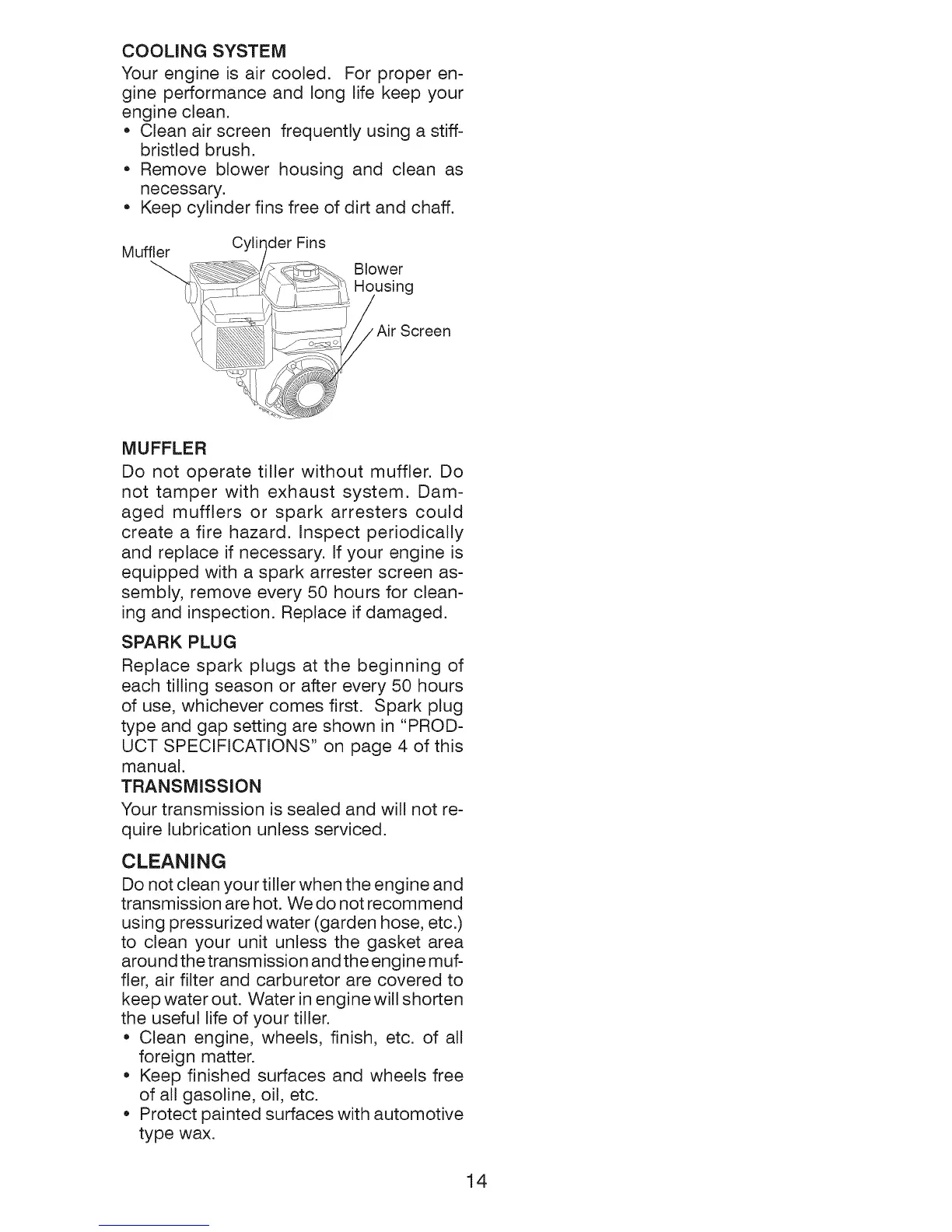 Do not operate tiller without muffler. Do