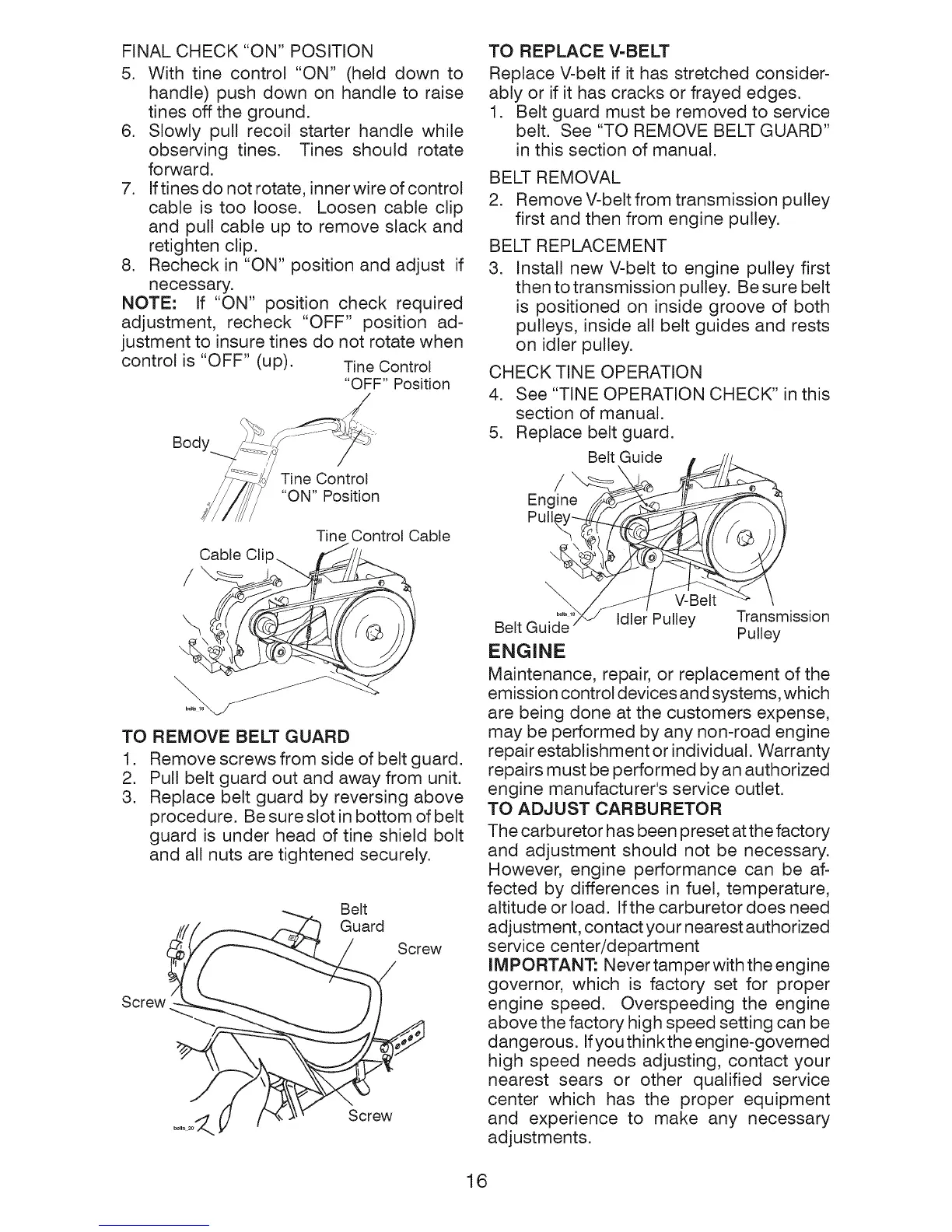 belt. See "TO REMOVE BELT GUARD"