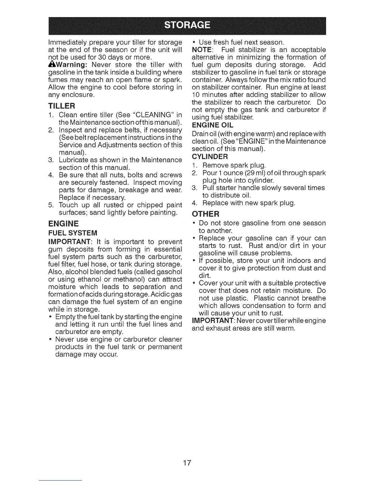 _Warning: Never store the tiller with