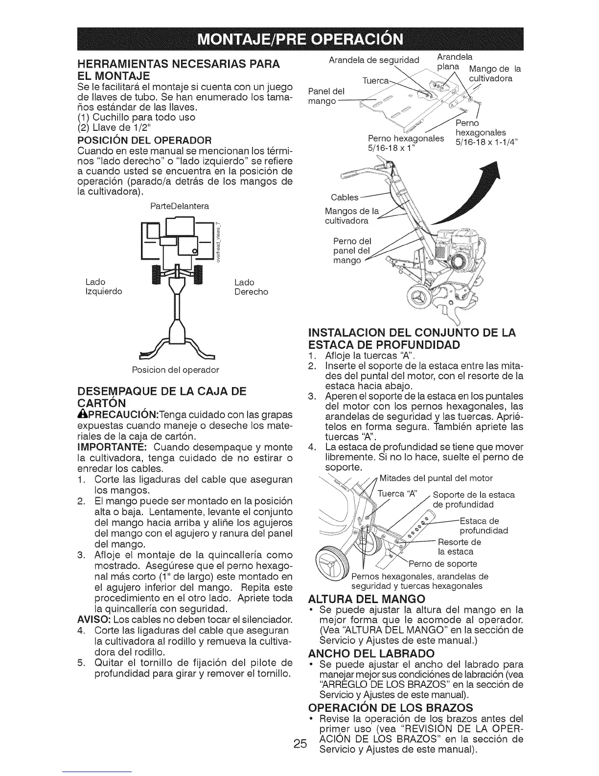 la cultivadora, tenga cuidado de no estirar o