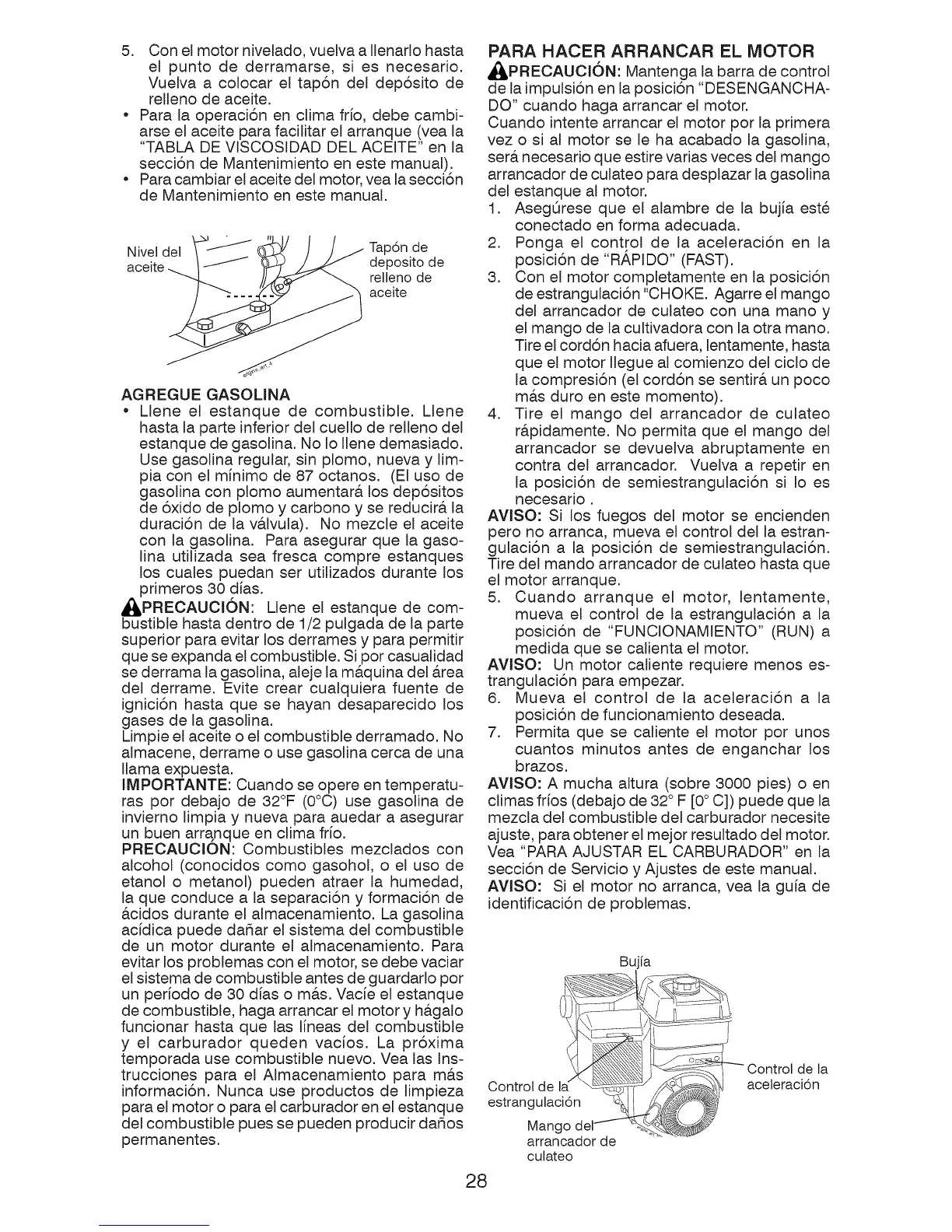 se derrama la gasolina, aleje la ma.quina del a.rea