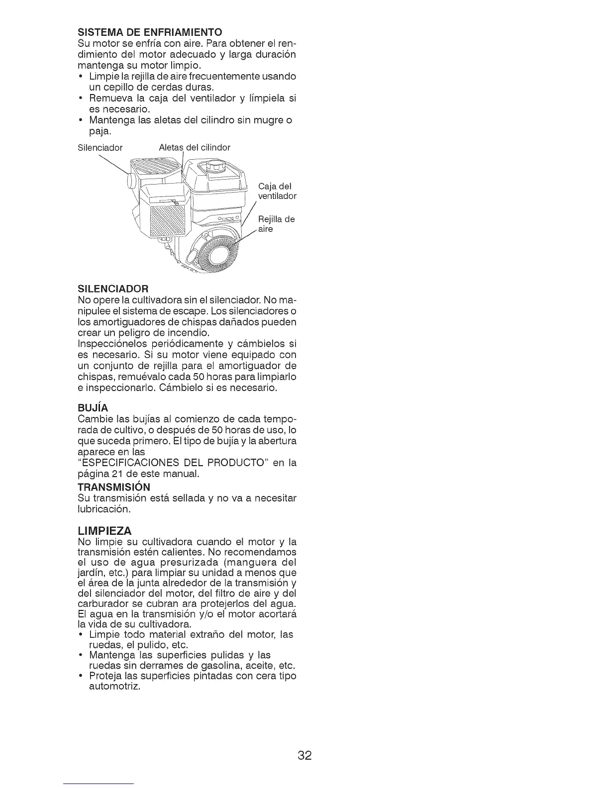 No limpie su cultivadora cuando el motor y la
