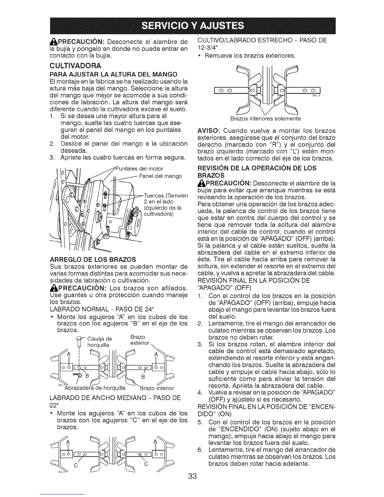 Para obtener una operaci6n de los brazos adec-
