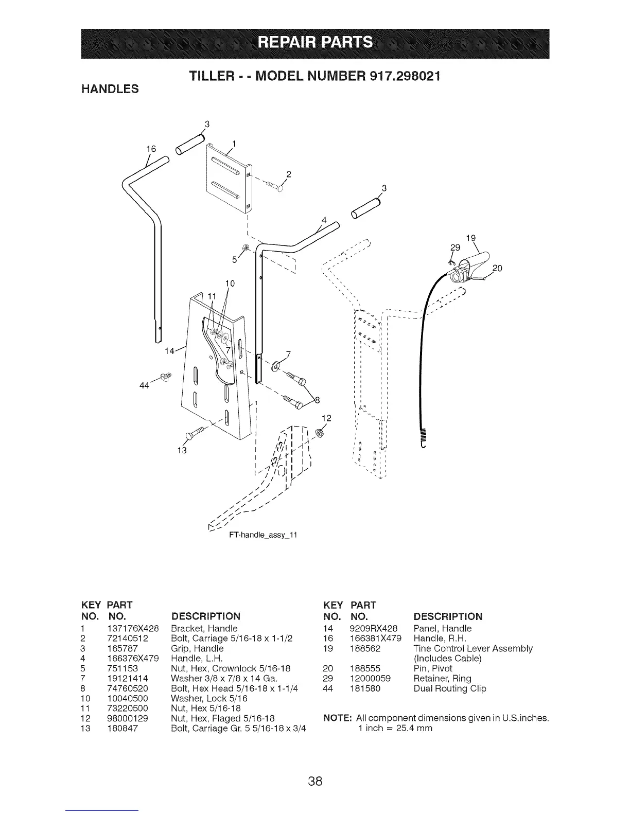 TILLER - - MODEL NUMBER 917.298021