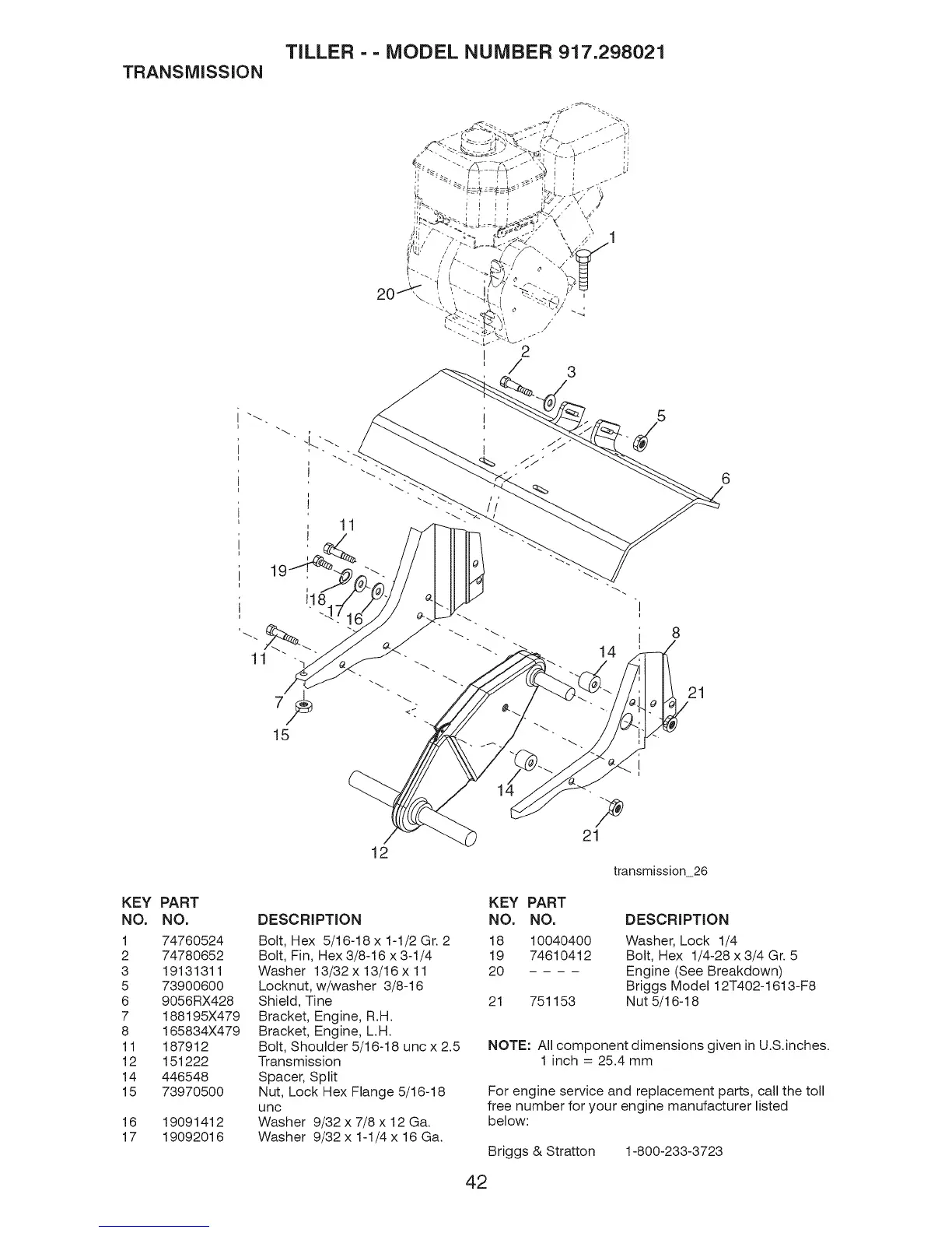TILLER - - MODEL NUMBER 917.298021