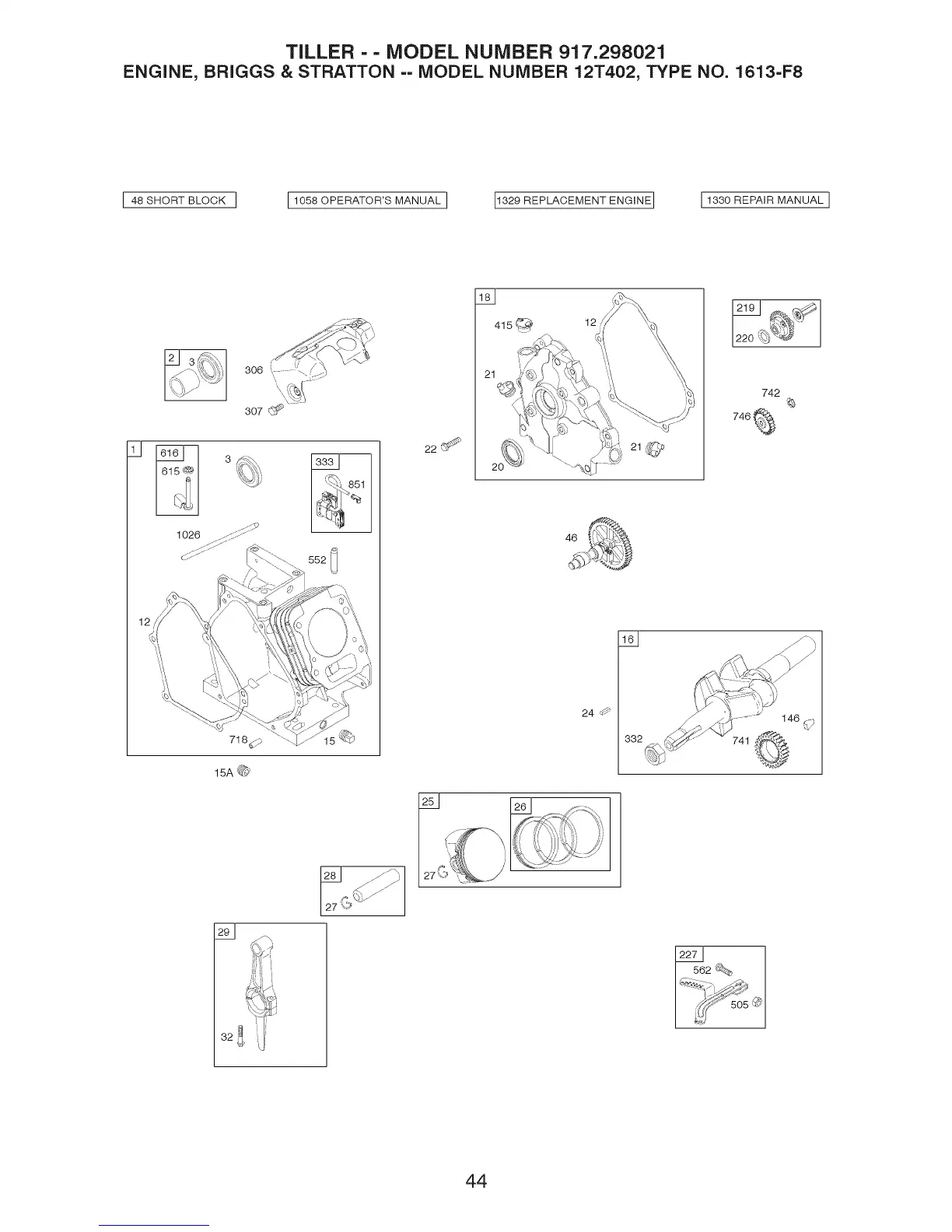 I 48 SHORT BLOCK I [1058 OPERATOR'S MANUAL ] [1329 REPLACEMENT ENGINE] [1330 REPAIR MANUAL [