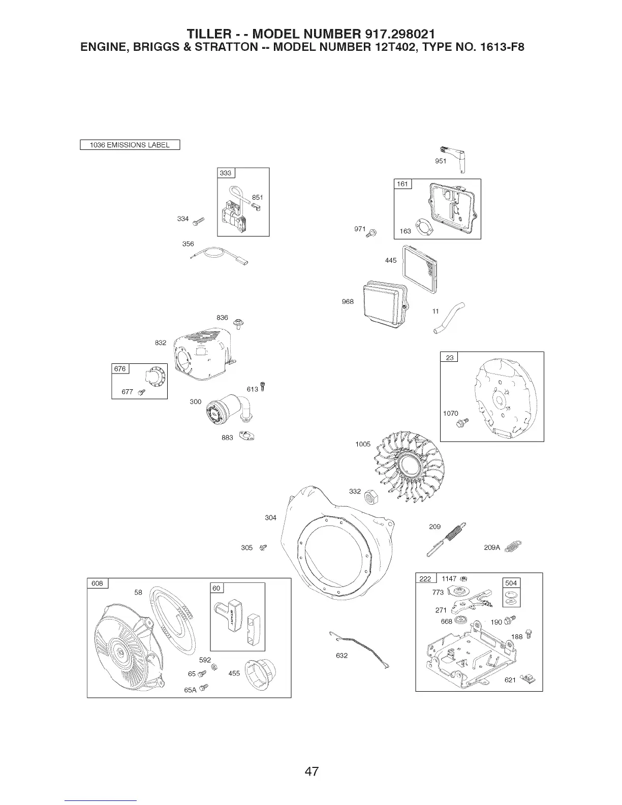 ENGINE, BRIGGS & STRATTON -= MODEL NUMBER 12T402, TYPE NO. 1613-F8