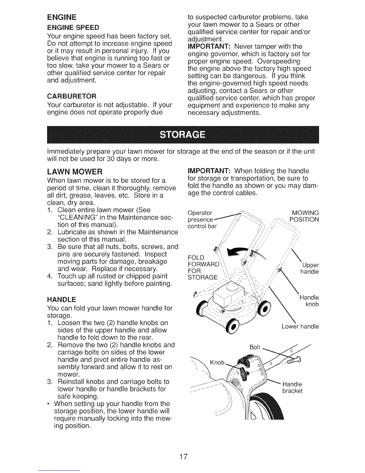 When lawn mower is to be stored for a