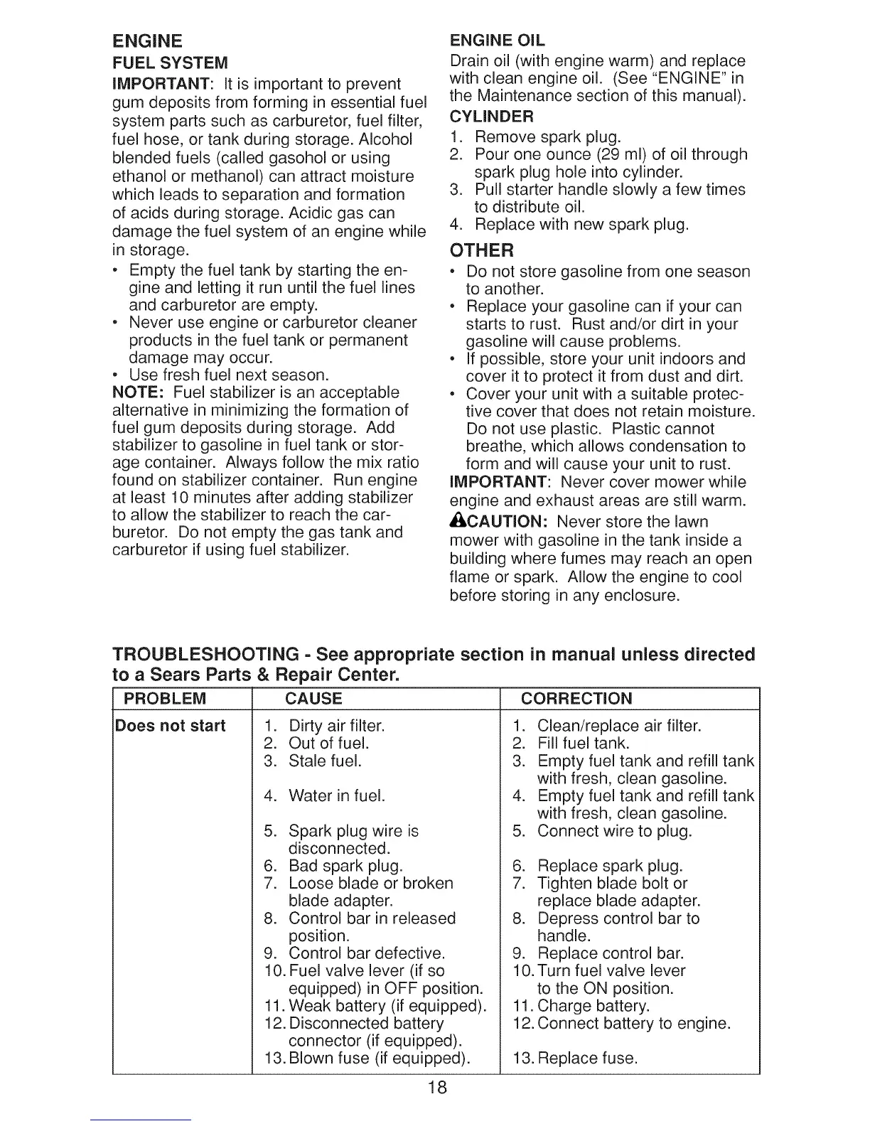 TROUBLESHOOTING - See appropriate section in manual unless directed