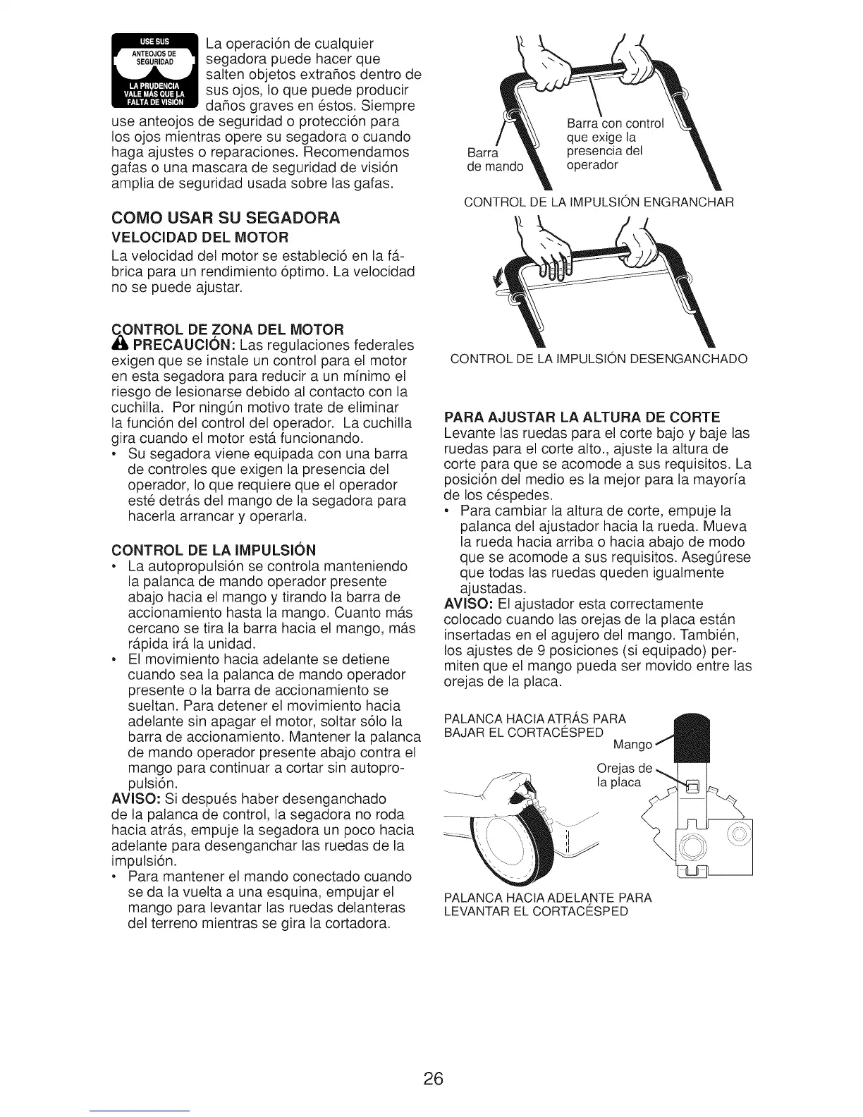 ruedas para el corte alto., ajuste la altura de