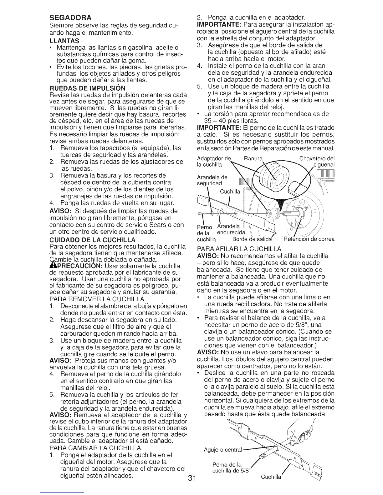 IMPORTANTE: El perno de la cuchilla es tratado
