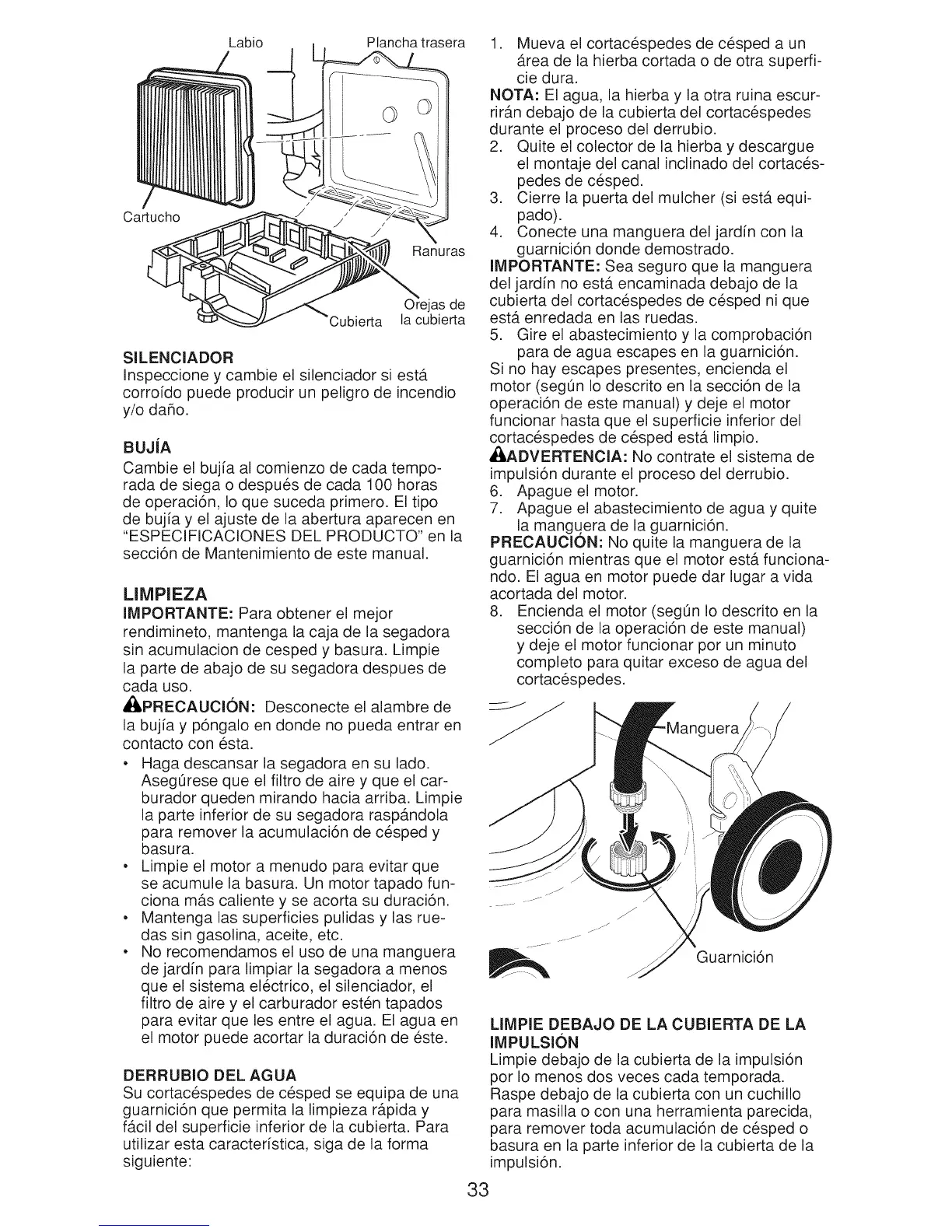 Limpie debajo de la cubierta de la impulsi6n
