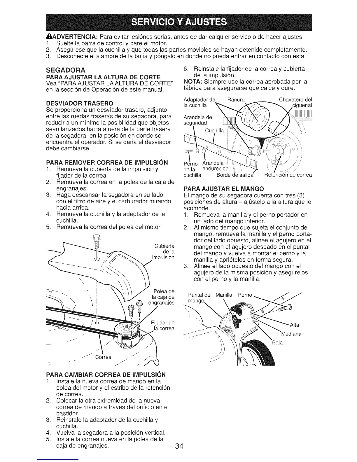 Vea "PARA AJUSTAR LA ALTURA DE CORTE"