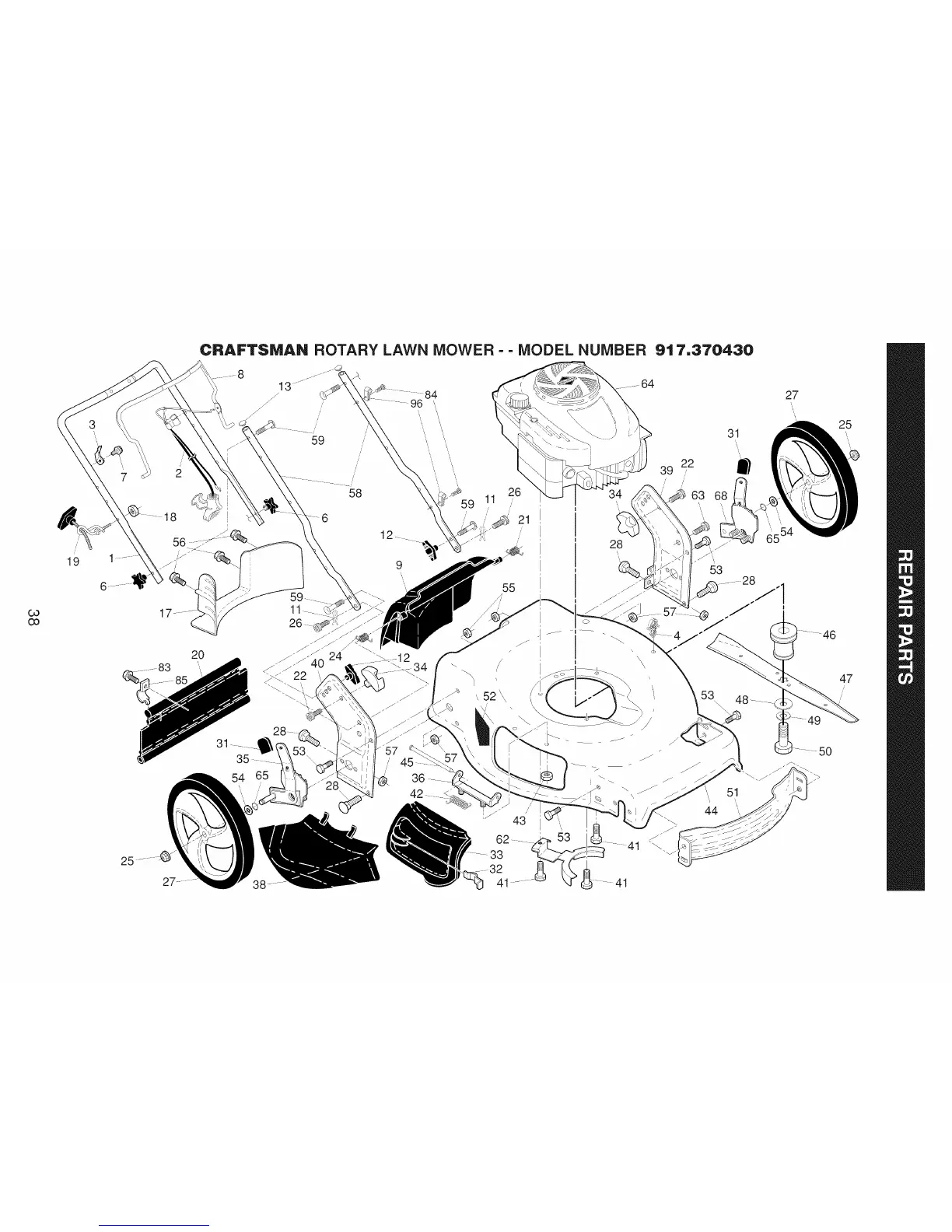 Craftsman 917.370430 - Repair Parts; Craftsman Rotary Lawn Mower-Model Number 917.370430